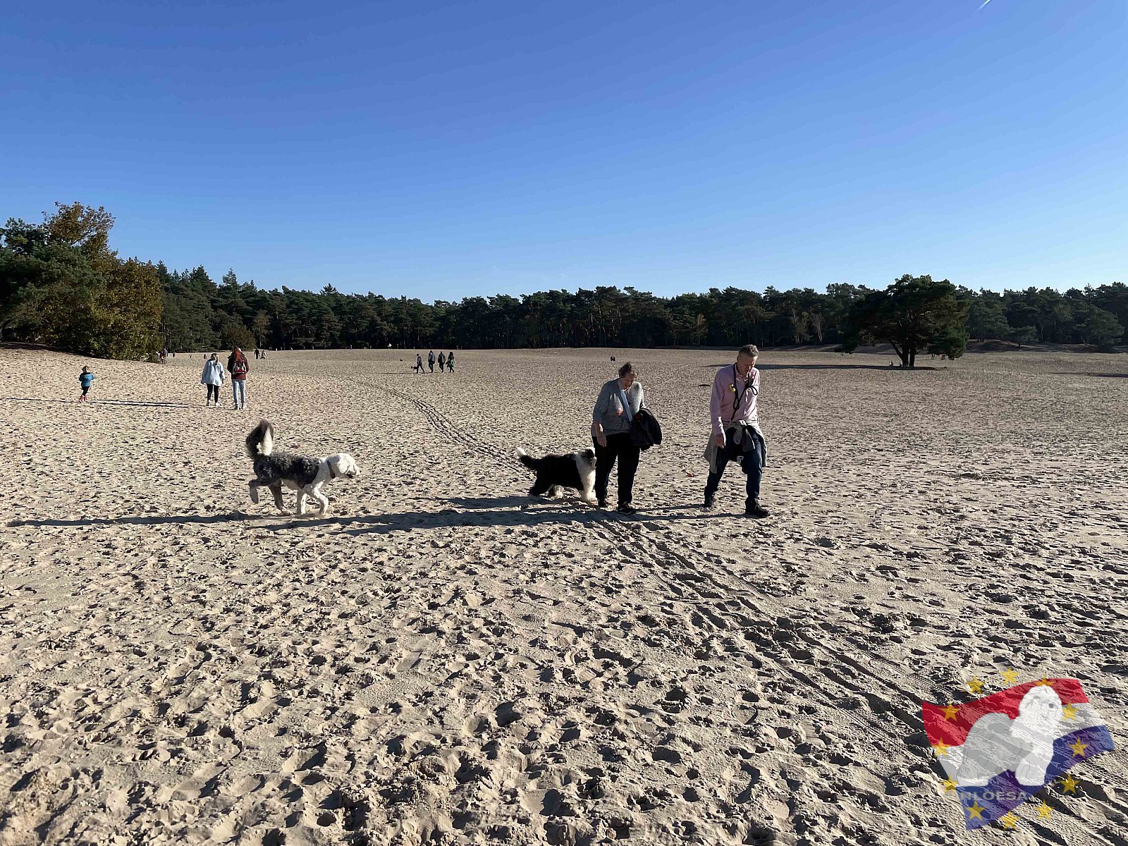 Het gezelschap was wat uitgedund ivm (herfst)vakanties, en doordat diverse teefjes loops waren mochten ze niet meekomen. Maar, het was een leuke groep met blije honden, gezellige baasjes en het weer was fantastisch! Strak blauwe lucht, geen zuchtje wind en heerlijk zonnetje in een schitterende omgeving. Wat willen we nog meer? Nou... gewoon méér van deze leuke dagen natuurlijk! En dat gaan we doen. Check onze agenda op de website voor de geplande evenementen.